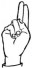 На ћирилици написано МАКСИМ ШЕВО састоји се из 10 слова [?]. Исписано ћириличном једноручном азбуком за глувонеме: